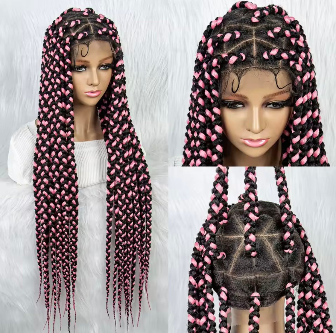 Colorful Full Lace Braided Wigs Synthetic Lace Front Wig With Baby Hair Braids 32inches.